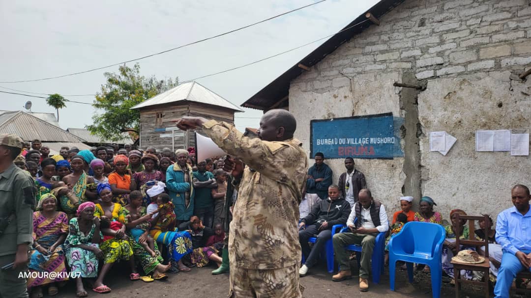 L’Administrateur du territoire, Prince Mpabuka, accompagné du Colonel Léon Kanyamibwa, a rencontré ce vendredi 15 août, les habitants des localités de Mushoro et de Rumangabo pour aborder des questions cruciales, allant de la gestion du Parc national des Virunga à la sécurité, en passant par la lutte contre le tribalisme.