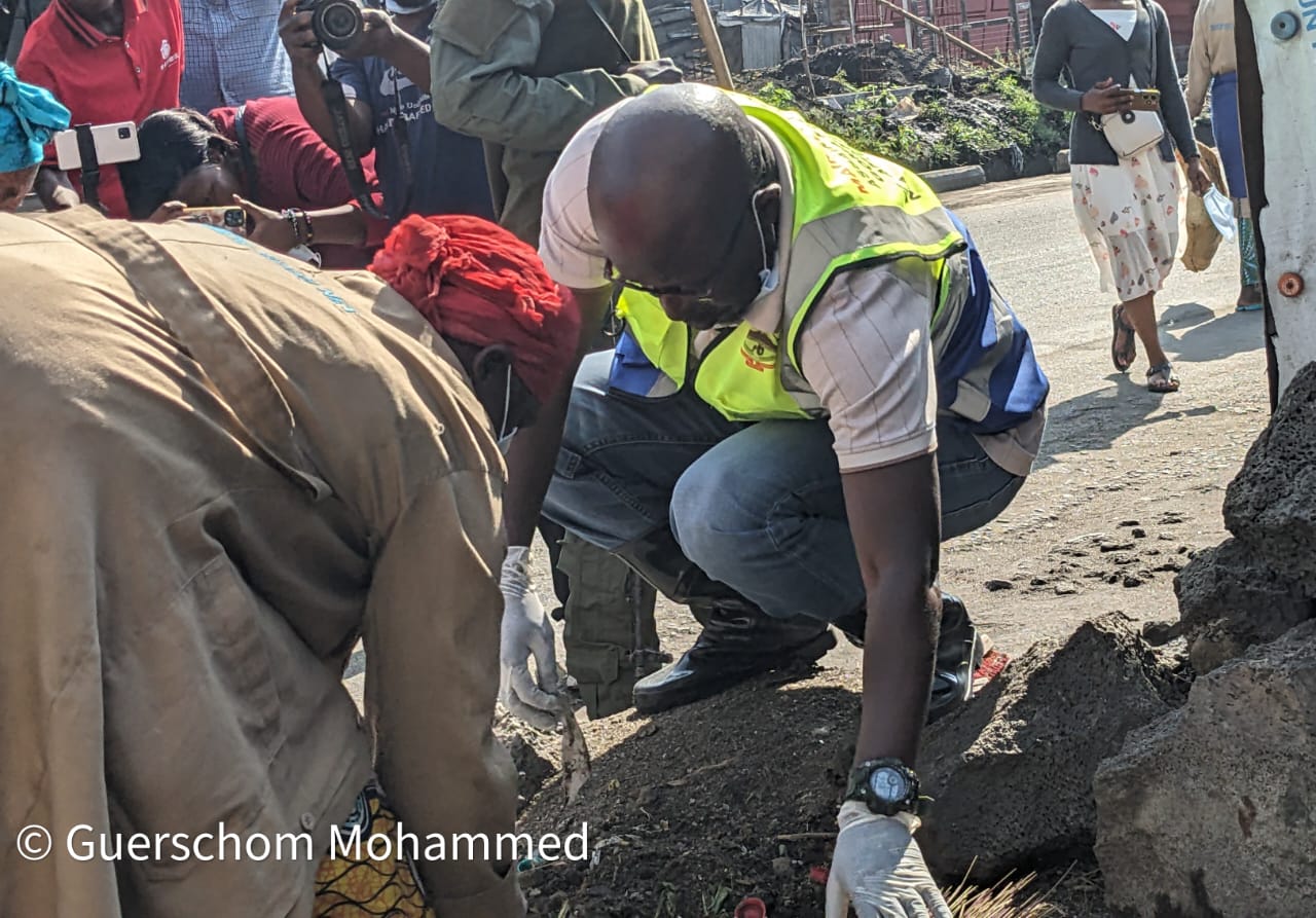 Le Maire de Goma en train de soutirer des saletés entre les pierres